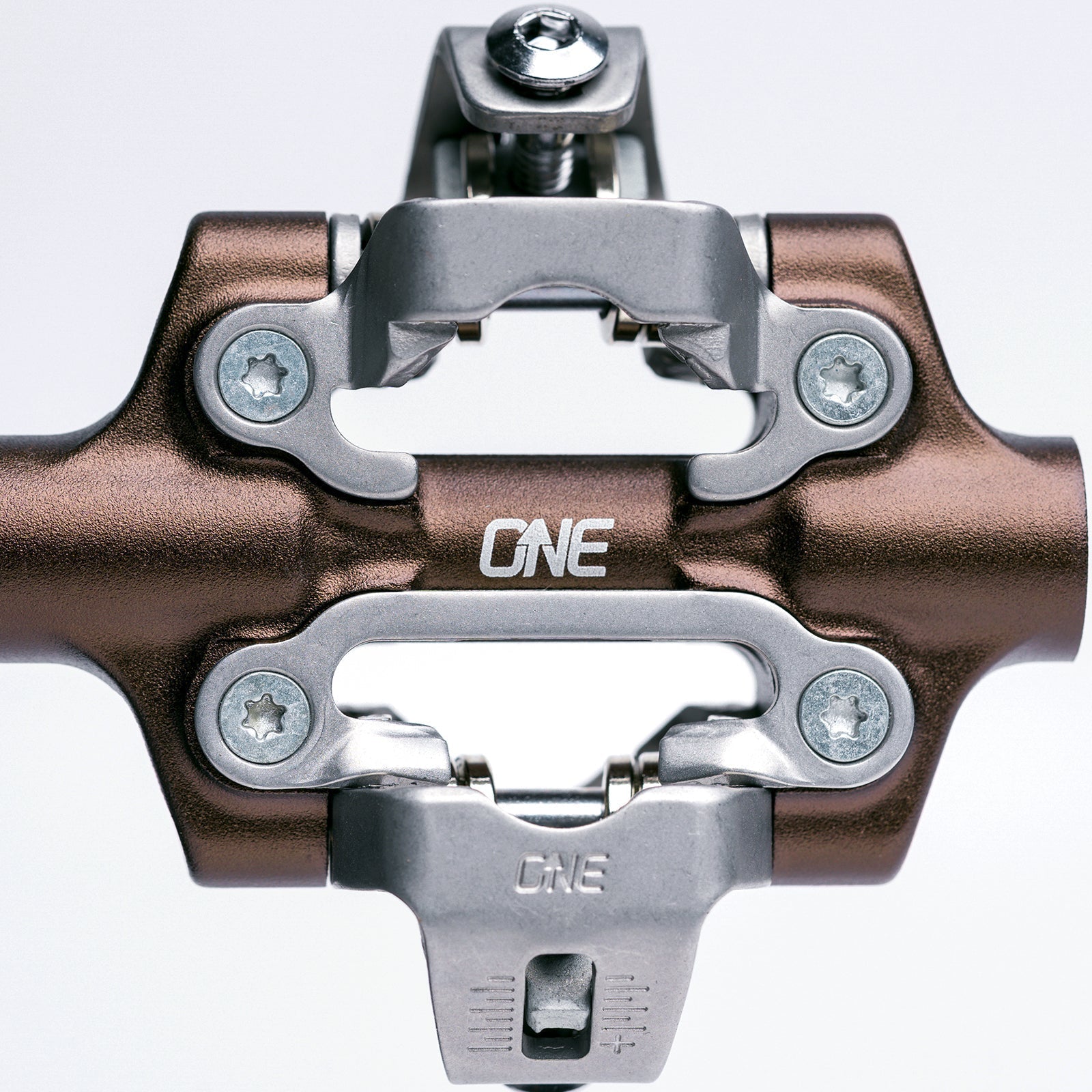 Custom, Stainless Steel, SPD™ Compatible Binding offers a locked-in feel with no unwanted play, and works with OneUp's own cleats and Shimano SPD™ cleats.